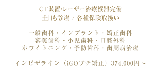 保険内の一般歯科診療はもちろんのこと、歯列矯正・インプラントや