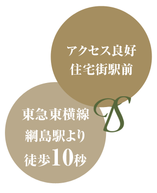 東急東横線 綱島駅東口から出て右側すぐのところにございます。